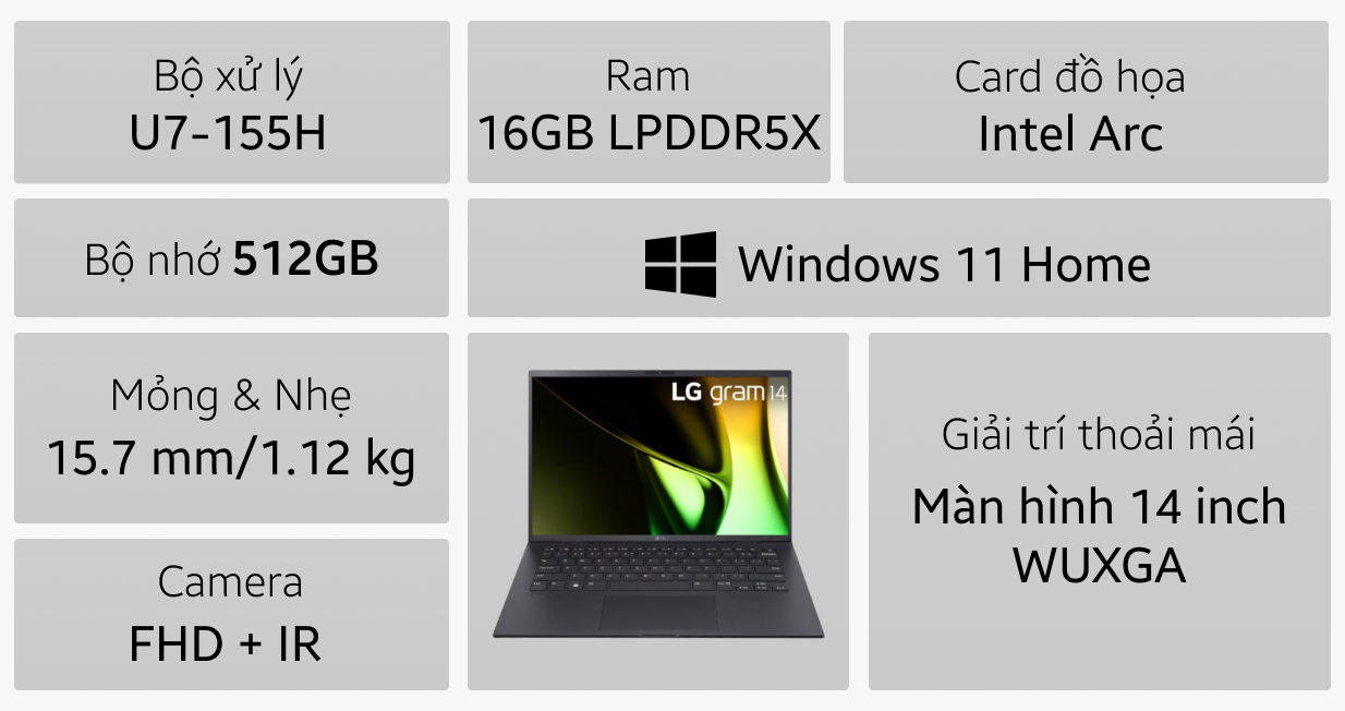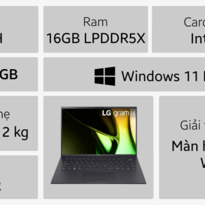 Laptop LG Gram 2024 14Z90S-G.AH75A5 (Intel Core Ultra 7 155H |16GB | 512GB | Intel Arc | 14 inch WUXGA | Win11 | Black)
