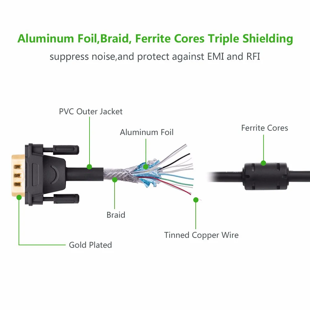 - Ugreen vga cable is gold plated to ensure full conduction without ghosting and data loss