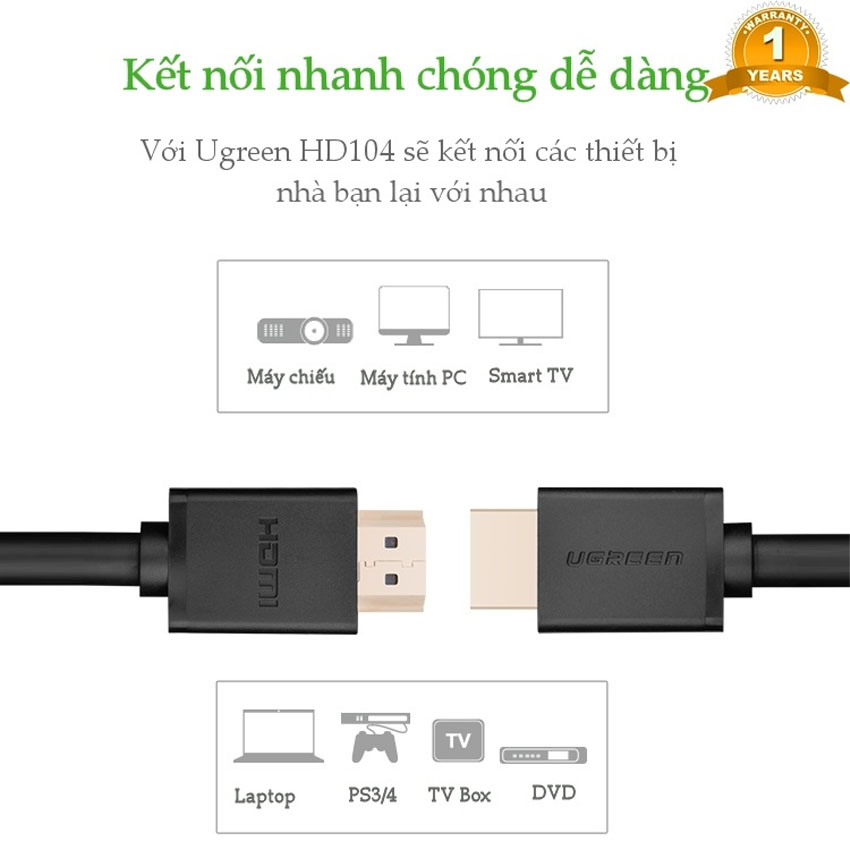 – Cáp HDMI dây tròn Ugreen giúp bạn kết nối HDTV cho Bluray Player, PC, Laptop, Xbox360, PS3, Android Box, Streaming Player.